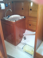 We hebben een vuilwatertank geïnstalleerd, het toilet wordt vervangen en er worden nieuwe afsluiters gemonteerd.... Gaten in de romp!!!!